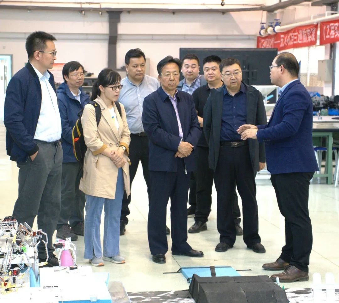 在北京理工大学,玉柱、林民一行参观了地面机动装备国家级实验教学示范中心、机器人实验中心等地,相关负责人重点介绍了地面机动装备类型及技术,探讨了学生参与方式、重点实验室建设思路及科研成果转化的新模式。
