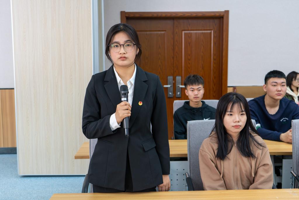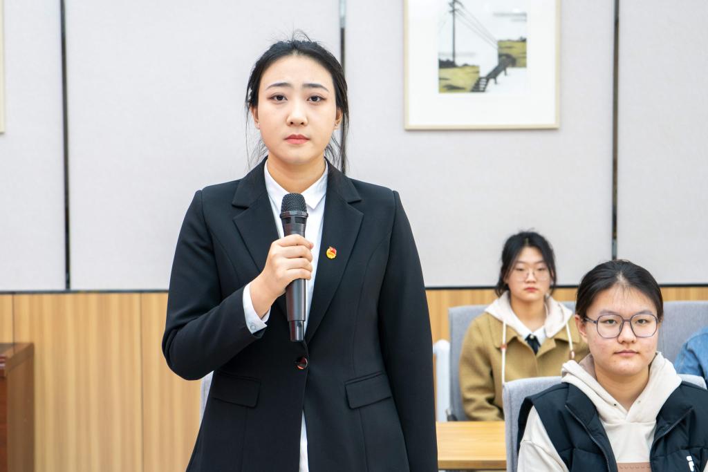 国家奖学金、优秀共青团员、华北五省计算机应用大赛内蒙古自治区三等奖获得者、院学生会主席团成员、2020级空间防护班团支部书记王美悦同学结合专业学习、学科竞赛和学生干部工作经历进行分享。她谈到,我们要自觉弘扬和践行雷锋精神,不怕困难、攻坚克难,立足岗位真抓实干,勇于接受锻炼,增长才干,努力提升自身能力素质,真正成长为德智体美全面发展的中国特色社会主义事业的合格的建设者和可靠的接班人。