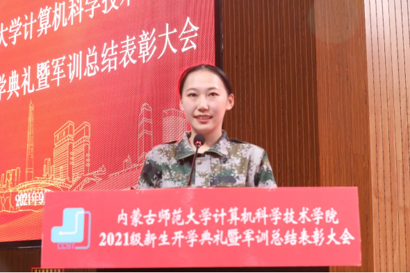 新生代表,2021级本科生代表计算机科学与技术师范1班伊若晗同学发言
