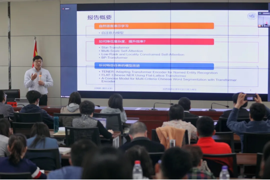 本次讲座特邀复旦大学计算机学院邱锡鹏教授做题为《自然语言处理中的自注意力模型》的学术报告,邱锡鹏教授首先对自然语言处理的表示以及常用的模型进行了介绍,然后介绍自注意力模型的原理,并分析自注意力模型的基本原理和优缺点,提出一些改进模型(Star-Transformer、Multi-Scale Transformer、BP-Transformer等),随后介绍了自注意力模型在文本分类、实体名识别等任务上的具体应用并对自注意力模型及其未来发展趋势进行展望。最后,邱锡鹏教授与德赢官网师生开展学术交流。