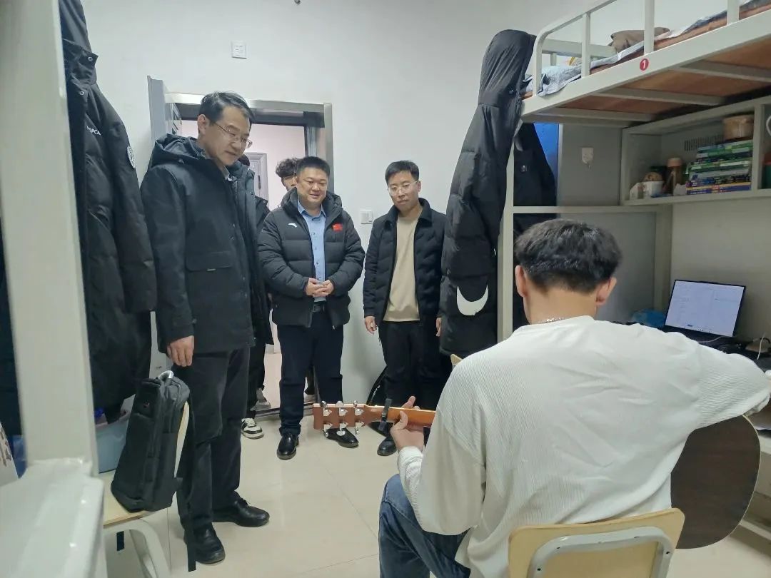 为积极响应学校关于开展文明安全纪律教育月活动要求,进一步从严从紧做好学生安全工作,筑牢学生管理安全防线,掌握学生所思所想,2023年12月6日,德赢ac米兰官方合作党委书记王海龙带领全体专职辅导员深入学生公寓,走访、排查公寓安全隐患,并了解学生期末学习生活状况及普遍诉求。