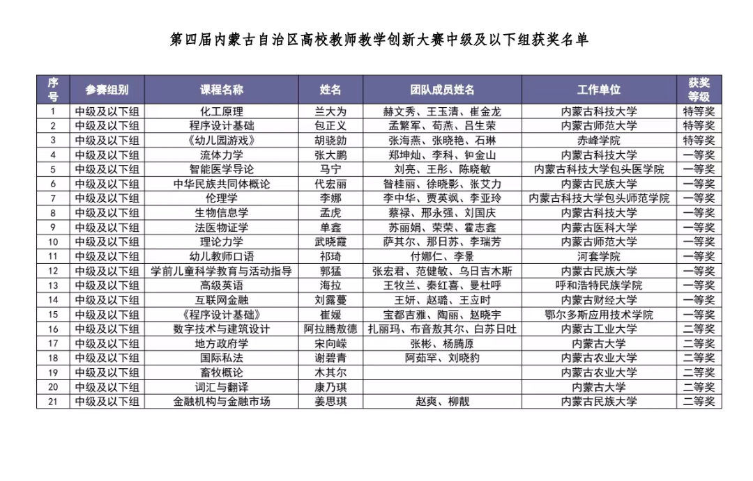 4月12日至13日,由内蒙古自治区教育厅指导、内蒙古自治区高等教育学会主办,内蒙古科技大学承办的第四届内蒙古自治区高校教师教学创新大赛暨第四届全国高校教师教学创新大赛内蒙古赛区选拔赛在内蒙古科技大学圆满落幕。