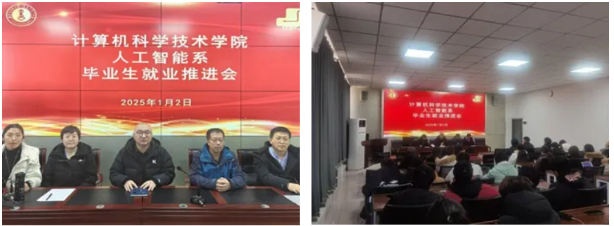 首先,戚桂美老师向学院汇报人工智能系2025届毕业生就业工作安排:形成就业举措台账,定期向学院汇报就业工作,听取学院领导指导意见;全员参与就业工作,从课程考试、毕设指导、就业指导等方面保障;“多对一”地对其开展常态化就业辅导与督促工作,按周汇报就业进展。
