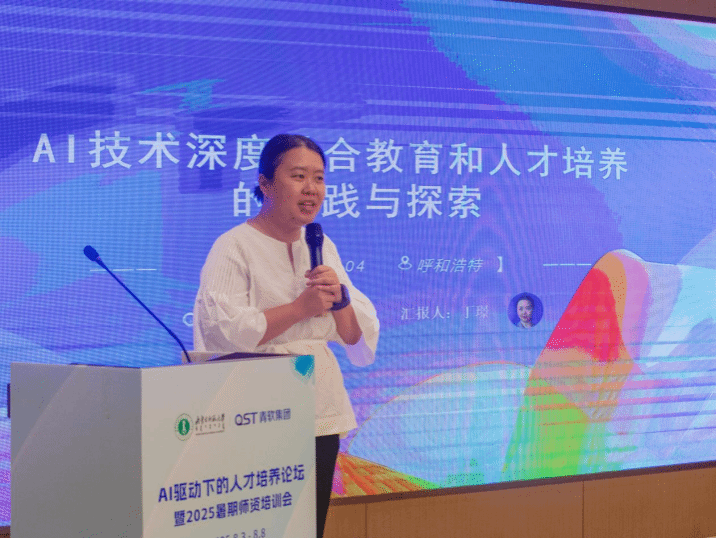 青软集团产教融合研究院院长丁璟详细阐述“AI技术深度融合教育和人才培养的实践与探索”,分享校企协同育人的宝贵经验。