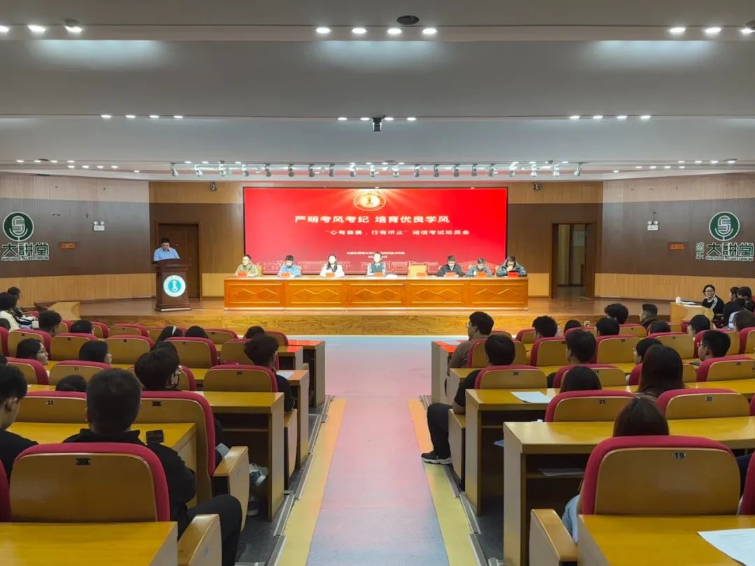 为进一步加强学院学风建设,严肃考风考纪,将诚信考试教育落到实处,营造公平公正的考试环境,12月13日下午,德赢官网于图书馆一楼报告厅召开诚信考试动员大会。德赢官网党委书记王海龙,辅导员及各班级班团委员、学生代表参加会议,此次会议由团总支书记赵巍伟主持。