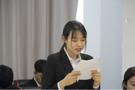 渠莎莎同志介绍张晓芳、王丽蔓、刘馨岩、贾春雨、郭思良、邱宇同志在预备期间的表现情况。