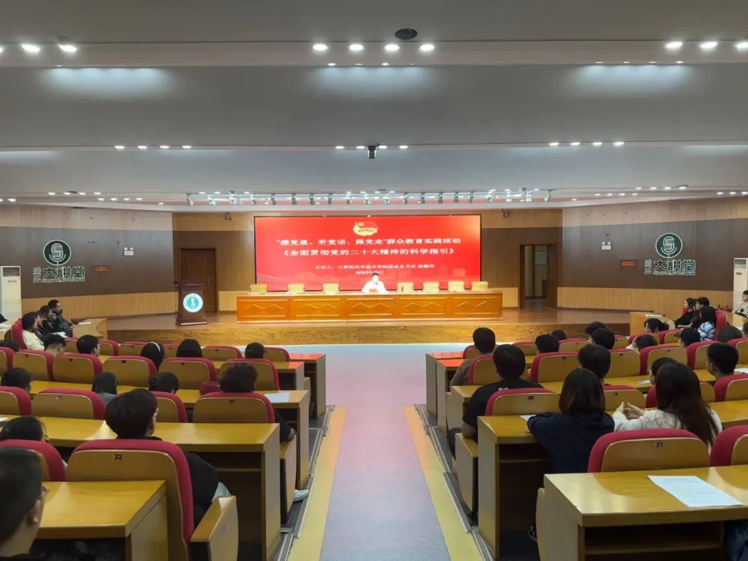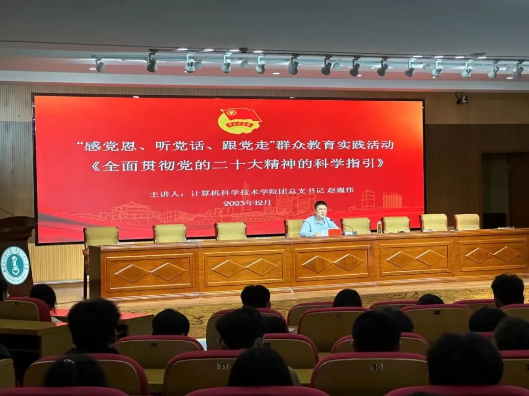 为扎实推进学习贯彻习近平新时代中国特色社会主义思想主题教育走深走实,坚定广大团员和青年“感党恩、听党话、跟党走”的信心和决心,德赢ac米兰官方合作团总支书记赵巍伟以《全面贯彻党的二十大精神的科学指引》为体,面向团支部书记、团支部副书记(班长)、学生会工作人员、社团代表开展“听党话、感党恩、跟党走”主题宣讲。