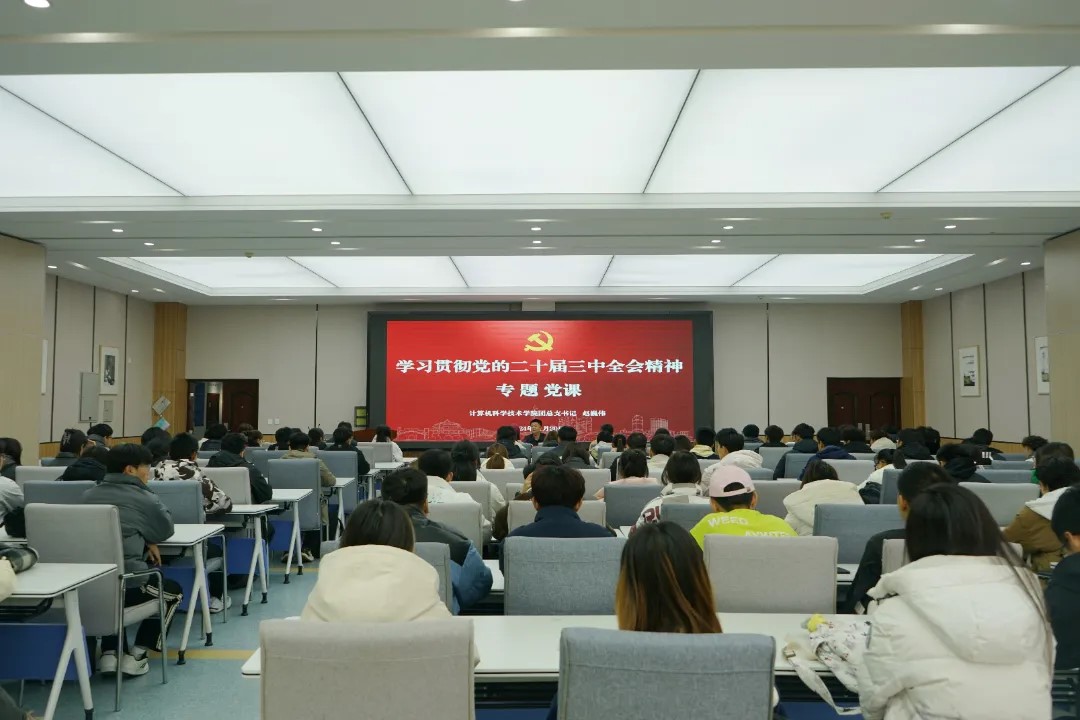 为深入学习贯彻党的二十届三中全会精神,进一步凝聚思想共识,激发奋进力量,推动党的二十届三中全会精神见行见效。11月21日,四个学生党支部联合开展学习贯彻党的二十届三中全会精神专题党课。德赢ac米兰官方合作党委委员、团总支书记赵巍伟以《学深悟透党的二十届三中全会精神》为题,结合党建带团机制、思想政治教育工作和学院共青团工作实际,讲授专题党课,学生党员和学生骨干聆听党课。